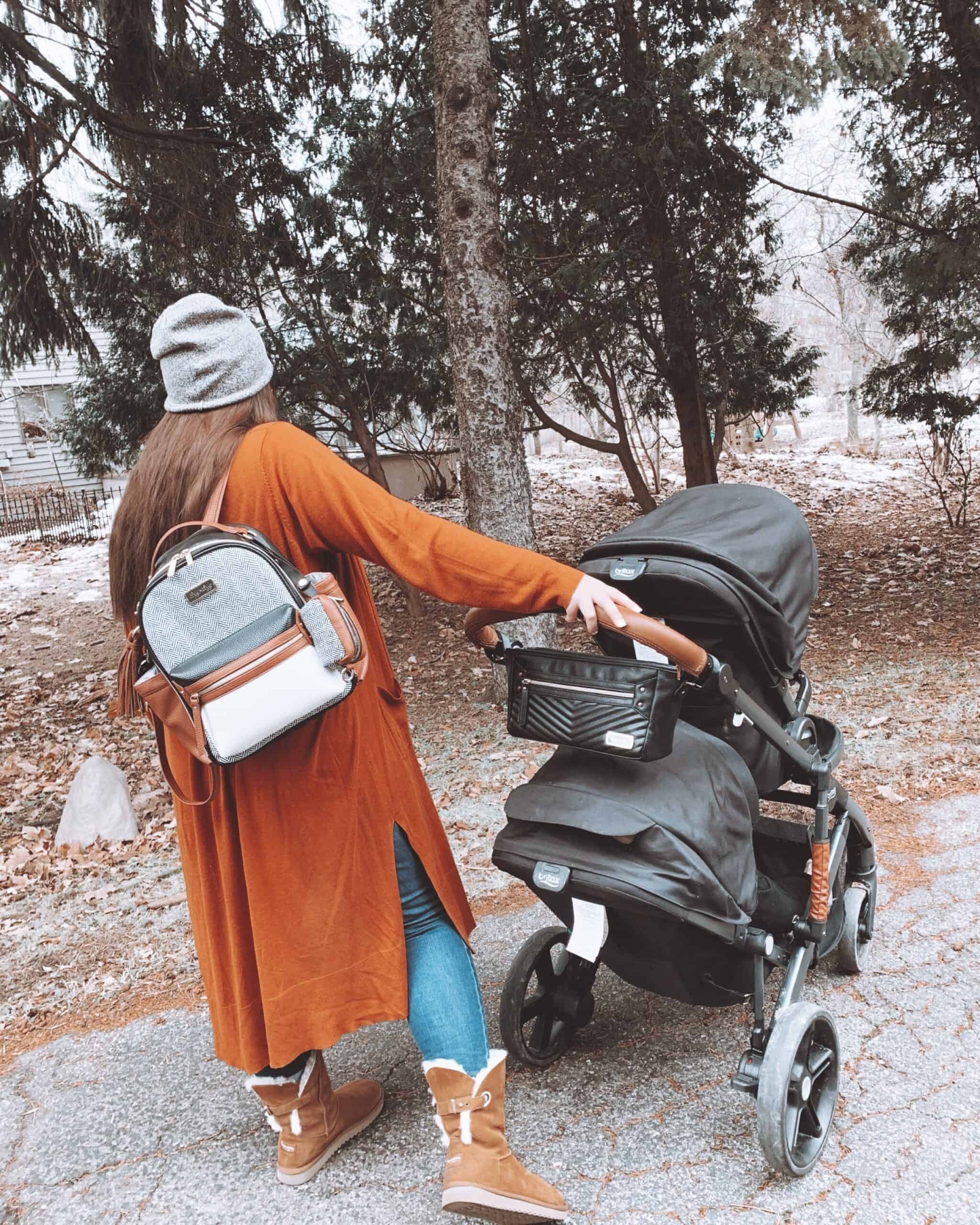 Staying organized while on the go has never been easier or more stylish than with Itzy Ritzy’s stroller caddy! The adjustable straps fit nearly any size of stroller handle and can be repositioned whenever you choose. The front of the stroller caddy features a zippered pocket that is perfect for storing a phone, keys, or any number of parent essentials. The inside of the caddy includes two built-in pockets that are perfect for holding bottles, so both you and your little one stay organized!