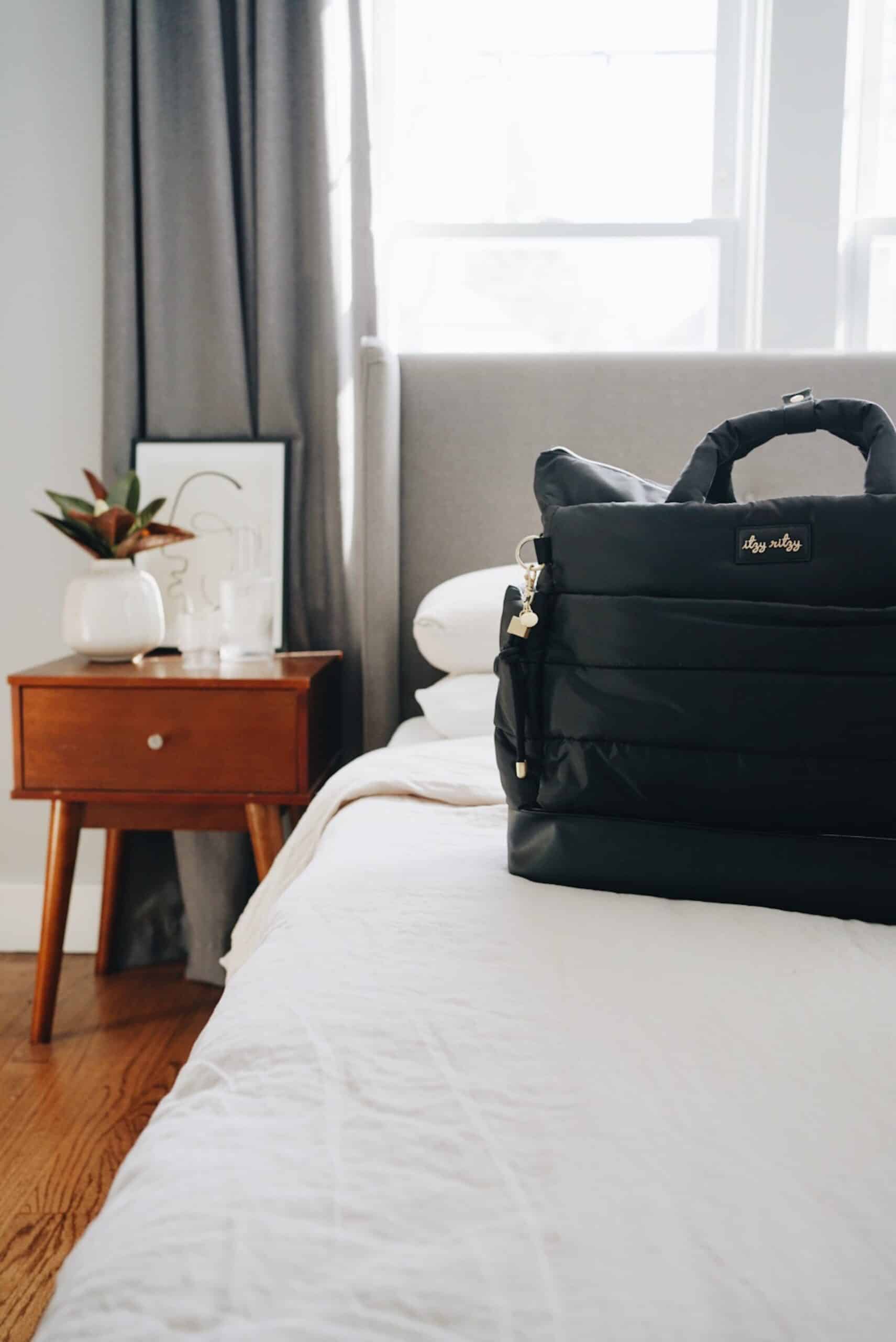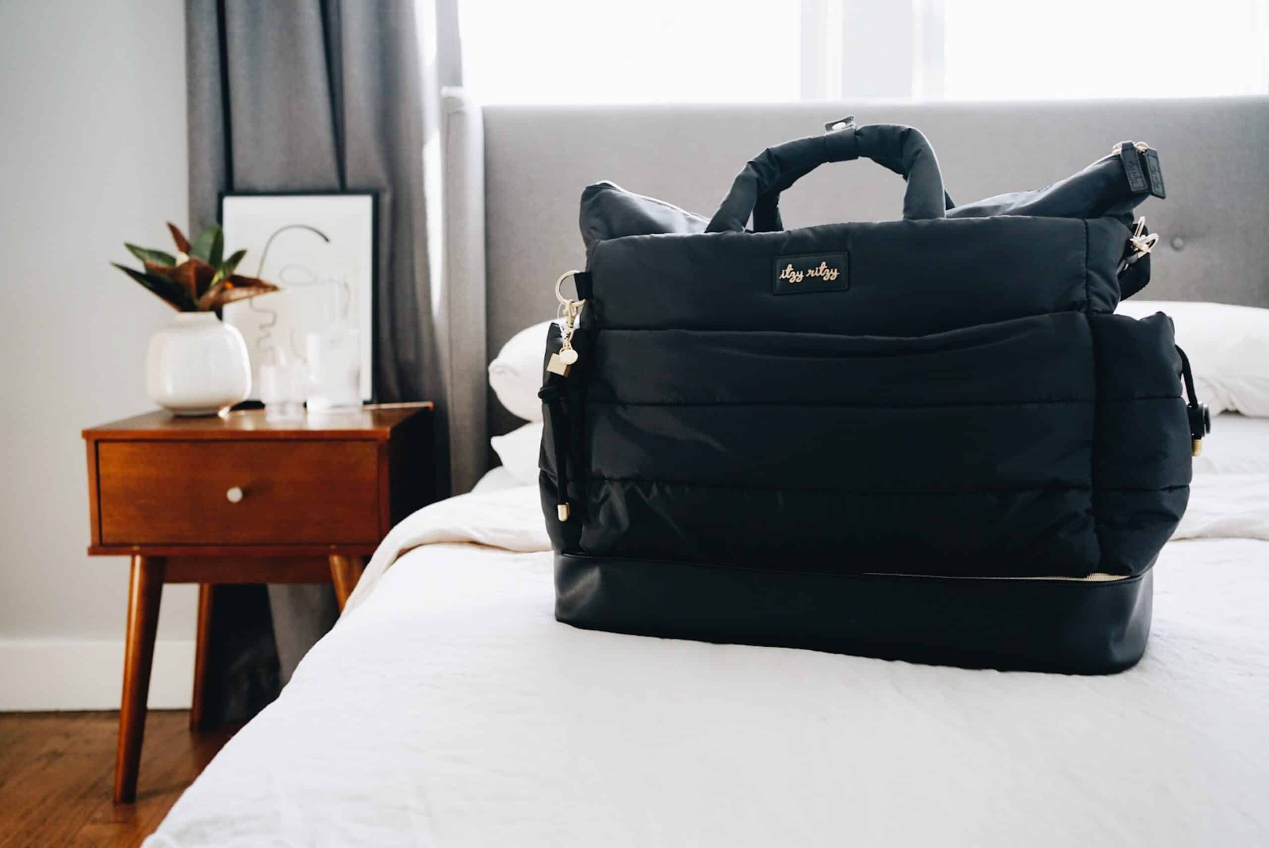 The Dream Weekender truly lives up to its name! This bag allows you to comfortably stash away your new mama must-haves, laptop and hospital paperwork in the large compartments while easily unzipping the sturdy base for added storage. When you’re not using it as a hospital bag, the weekender makes a great overnight bag or a supersized travel diaper bag! The puffer style material makes this bag lightweight but its large size will have room for all of your essentials and then some!