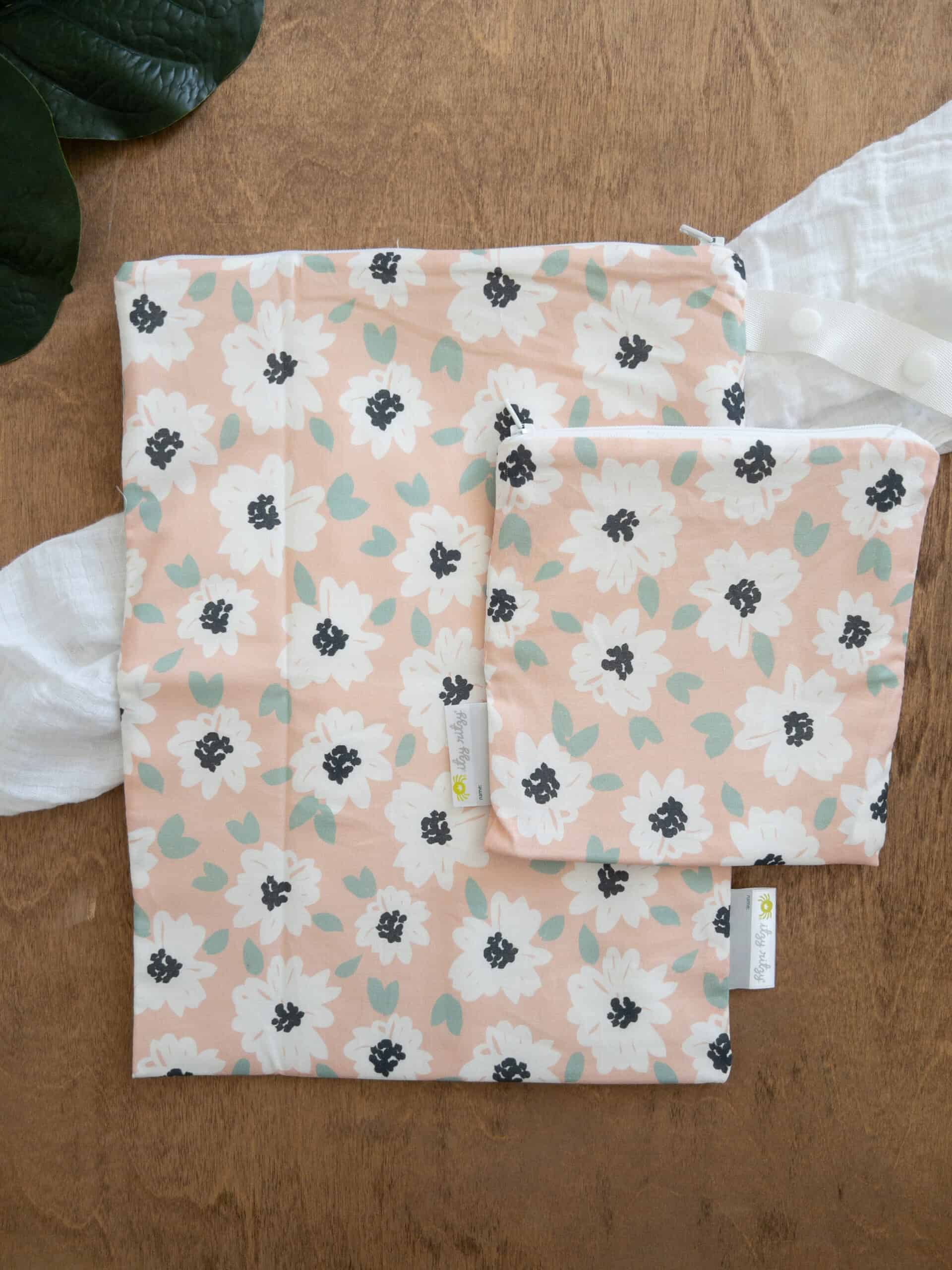 The Itzy Ritzy Sealed Wet Bag is the best way to store and travel with wet or dry items while still being fashionable. Each bag comes in a cute pattern and has a 100% cotton exterior. The lining is water resistant and a zipper closure prevents leaks and odors from getting out of the bag while it contains wet or liquid items. It can be used in a diaper bag for cloth diapers or while traveling to store toiletries or cosmetics. Machine washable; line drying is recommended.